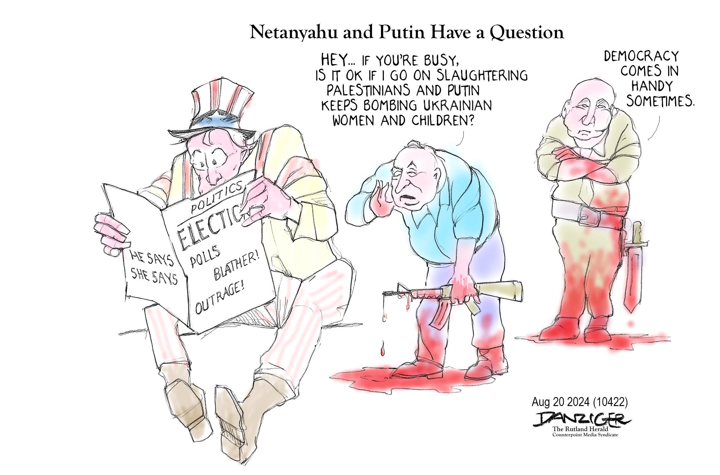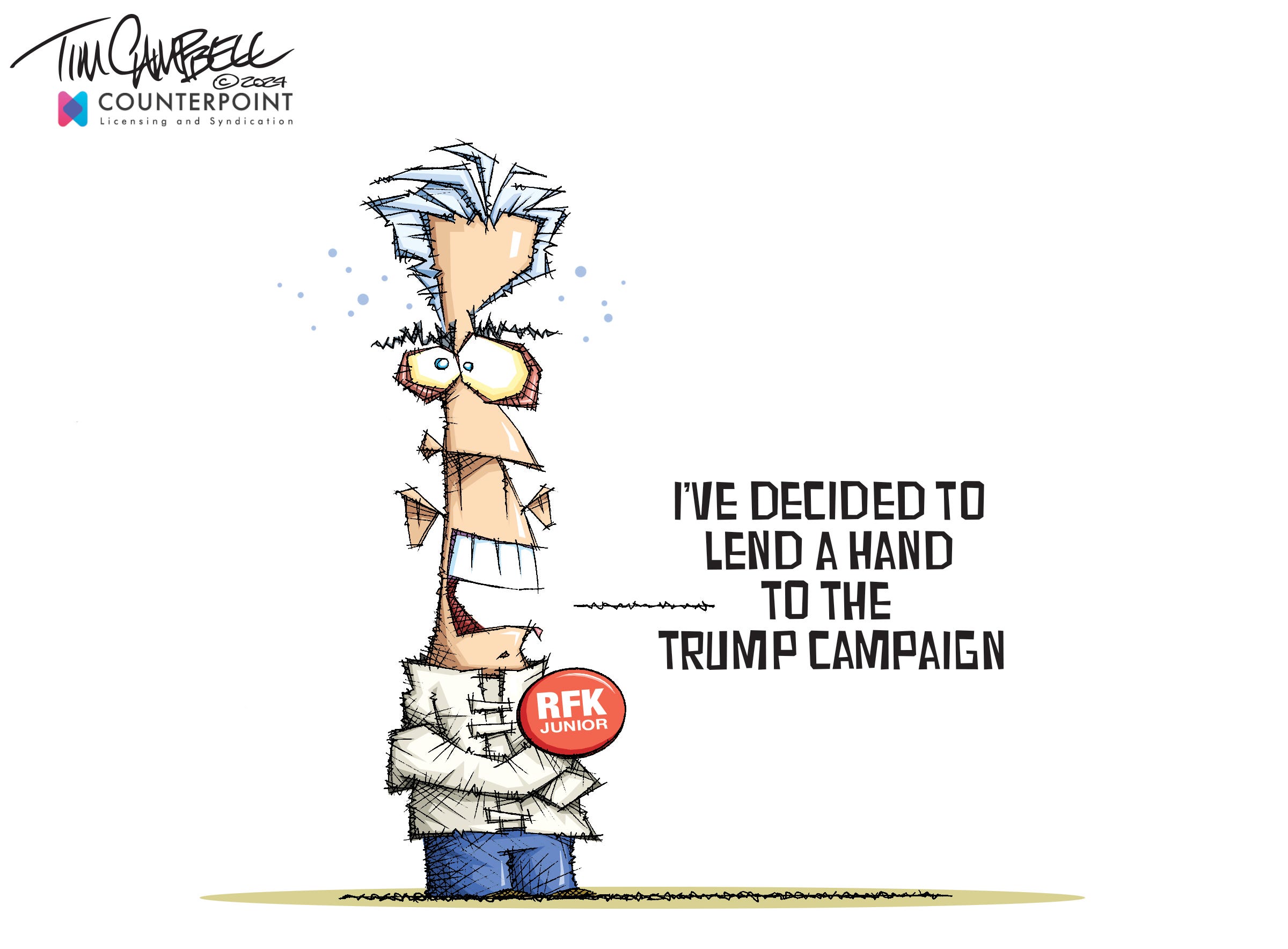 Happy Saturday, Cartoon Fans! Here are the Editor's Picks by Counterpoint's syndicated cartoonists: Eric Allie, Mike Beckom, Clay Bennett, Lisa Benson, Tim Campbell, Jeff Danziger and Pedro X. Molina; and our comic strips, Barney & Clyde, Reply All and Rudy Park. And here's the weekly link to the Toni Says Medicare column about Medicare's "health network." Cartoon by Eric Allie for Counterpoint This newsletter is free. If you can spare it, we'd appreciate your support:Support Counterpoint! Donate $5 Cartoon by Mike Beckom for Counterpoint Cartoon by Clay Bennett for Counterpoint Here's that obnoxious button again … Cartoon by Lisa Benson for Counterpoint Cartoon by Tim Campbell for Counterpoint Cartoon by Jeff Danziger for Counterpoint Cartoon by Pedro X. Molina for Counterpoint Cartoon by Liam Simonelli for Counterpoint Barney & Clyde by Weingartens & Clark, dist. by Counterpoint Want to read the full week of Barney & Clyde? Subscribe to the Saturday Barney & Clyde newsletter! Reply All by dee lewis, dist. by Counterpoint Rudy Park by Darrin Bell, dist. by Counterpoint SponsoredToni Says: "Medicare is NOT Cookie-Cutter" and "What You Don't Know WILL Hurt You!"Not understanding the rules and guidelines of Medicare can cause you to make costly mistakes that will last a lifetime. Whether you are helping your parents understand Medicare or choosing a plan for yourself, Toni King's column, Toni Says, can show you how to navigate your way through what has become the Medicare maze! One last-ditch effort! Support Counterpoint! Donate $5 Did someone forward this email to you? Subscribe here. Tired of the view from the Right? Subscribe to CP's free weekly Leftpoint email. Tired of the view from the Left? Subscribe to CP's free weekly Rightpoint email. Share your feedback with the cartoonists by replying to this email. Did someone forward this to you? Subscribe here. Counterpoint has a store! Find t-shirts, coffee mugs, greeting cards & more with your favorite cartoons. You're on the free list for Counterpoint. For the full experience, and to support our cartoonists, become a paying subscriber. © 2024 Counterpoint |